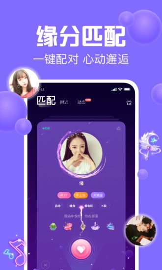 1.一键匹配:向右滑动匹配你喜欢聊天的人,一起玩进入娱乐室。