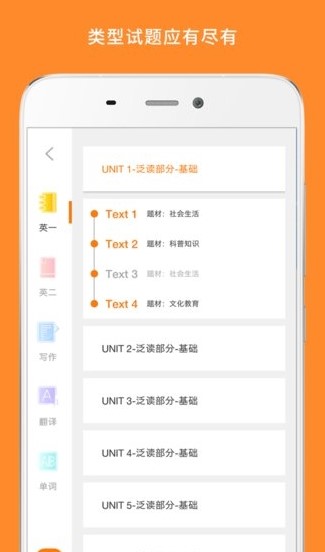 考研英语阅读app由星火专为考研的用户打造的一款英语阅读学习软件,app中提供了泛读、精度基础、精度提高、词根词缀等学习内容,还可以免费看考试微课堂,快速的提高英语学习能力,轻松备考