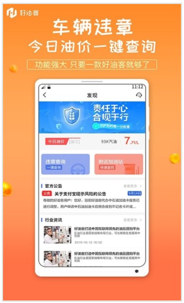 添加车辆信息实时进行违章查询,还可以查询每日油价以及附近加油站。功能强大,开车出门只要带上好油客就够了。