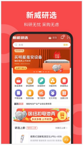 新威研选为客户提供精选科研设备。 在这款软件上的产品都是国家经过国家安全检查,质量有保障,营造安全科研环境,创造祖国美好未来。 根据需求选择产品类别,快速找到需求。 一体化服务可放心让用户使用。