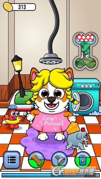 卡通欢乐的童话世界,精心的照料你的小狗,装扮你的小狗的同时,别忘记给它进水喂食;