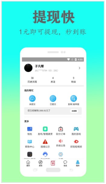 提现快:满1元即可提现,秒到微信、支付宝,轻松实现”每天半小时,月赚3000元”的小目标。