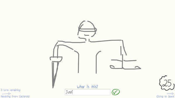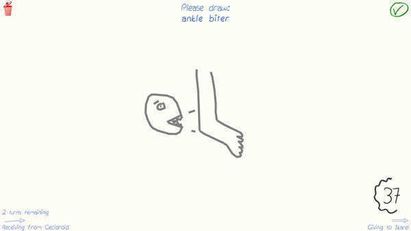 还可以联机互动,按照游戏的规则画出相应的物品,然后让别的玩家来猜。