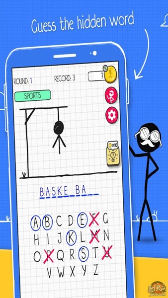 游戏玩法很简单,通过填补游戏上空缺的英语单词使火柴人死亡;