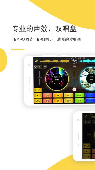 7、两个独立的三波段均衡器,Tempo调节,同步BPM,无缝混合两首歌曲,轻松接歌混音