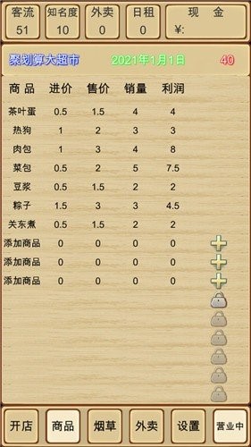 合理科学的运营你的超市,管理好你的超市商品销售,赚更多钱来扩大规模;