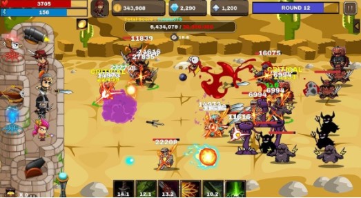 游戏内容丰富,各种塔防道具,炮台,弓箭塔,游戏模式多样,防御战,boss战,无限战,花样众多,好玩有趣。