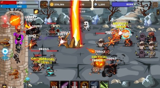 经典的游戏塔防,简单好玩,轻松上手,放置模式,点击释放技能,不断升级英雄,增强战力。