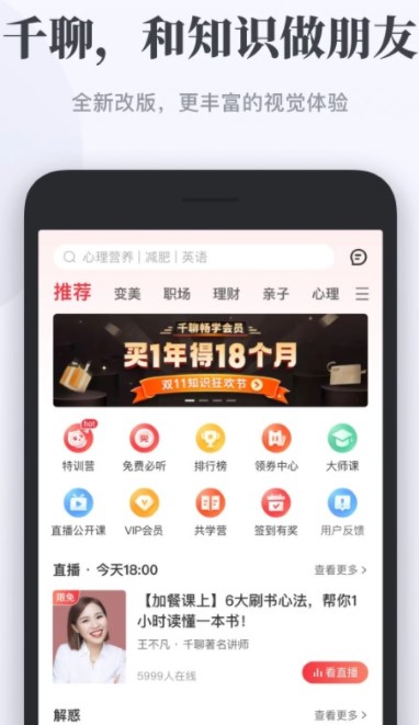·李银河,艾诚,刘媛媛,余声等大咖明星进驻,教你系统掌握一门学问,解决工作生活遇到的实际问题;