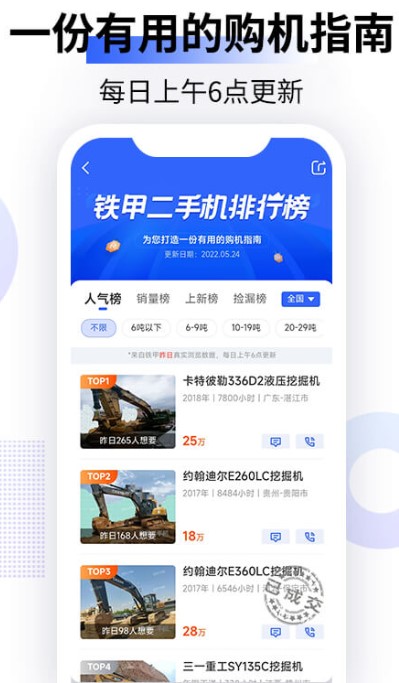铁甲二手机挖掘机网官方版交易网是中国专业的重型机械买卖市场。 如果你想买重型机器,又不想买新机器,那么请认准铁甲二手机。这款软件上面各种重型机械齐全,质量有保证。有需要的朋友可以下载试试。