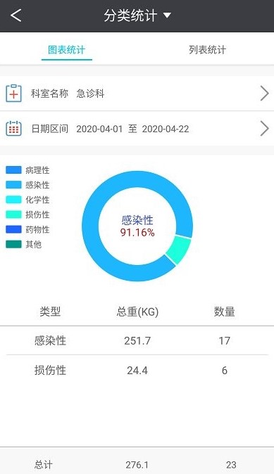 5、优质的分类统计服务,有着图表统计和列表统计两个模块。