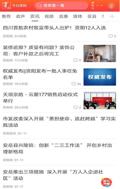 以幻灯、文字、图片、视频等多种表现形式,开设有推荐、资阳、天下、政情、融媒、视频等栏目,全天新闻实时更新,让您一手掌握最及时全面的本地资讯,最热门的国际国内大事要事,最酷炫的美图活动。用户注册登录以后还可以对新闻事件进行评论与分享,将好新闻与朋友们一起分享。