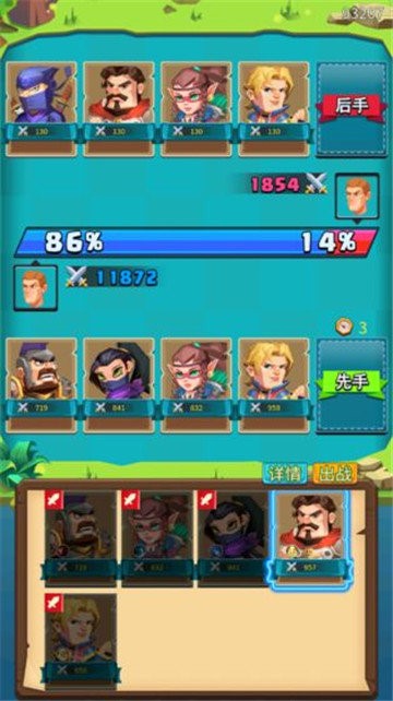 游戏有着一个完整的故事剧情主线,对战的玩法也是十分的讲究策略,排兵布阵,阵容搭配,都需要你一手指挥!