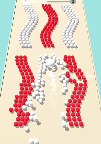 玩家需要点击屏幕操控小球,冲撞挡在前方的障碍物;