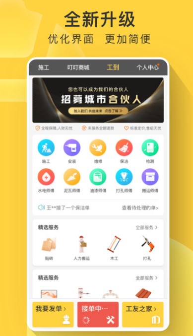 装修工、水电工、泥瓦工、抹灰工、安装工等技能技巧全包含,在线接单、在线学习、在线交友一个都不误!