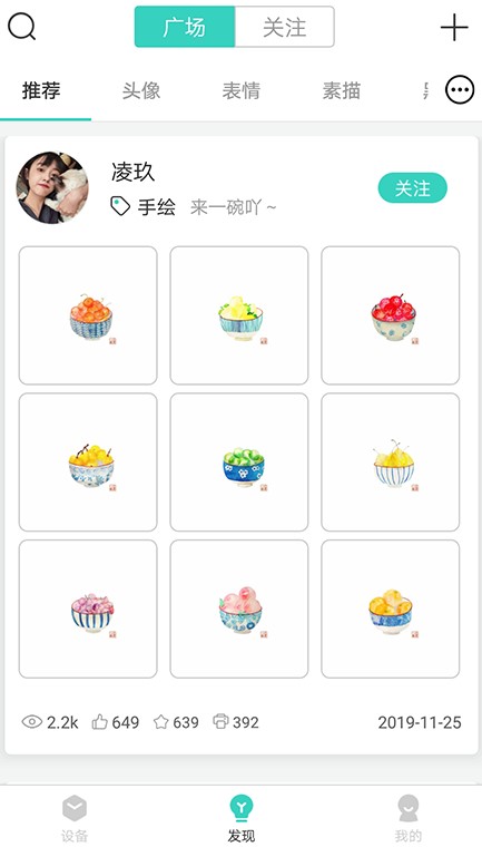 还可以在社交广场中订阅素材、分享你的作品,结交好友。