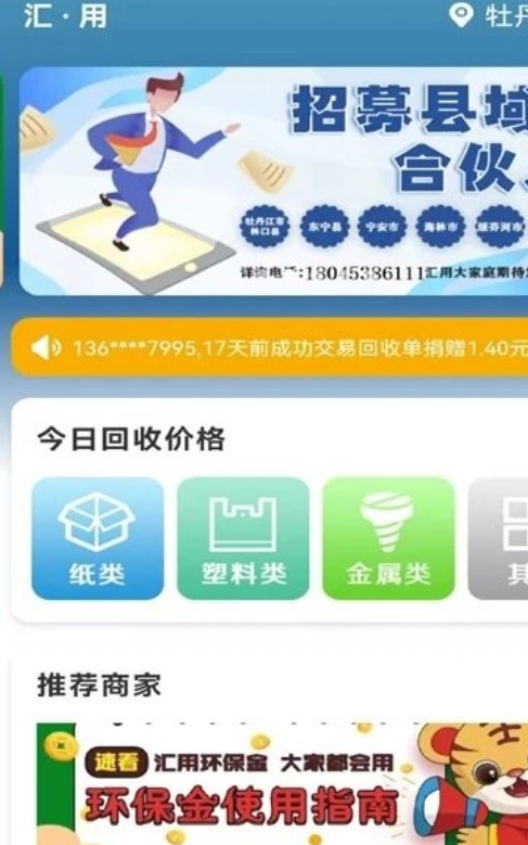 汇用APP倡导环保回收利用平台,各种闲置物品可以在此公开销售。 变废为宝从你开始,实时查看附近的商家,不同的物资价格不同,用户也能轻松查询。 心动了,一起行动吧。