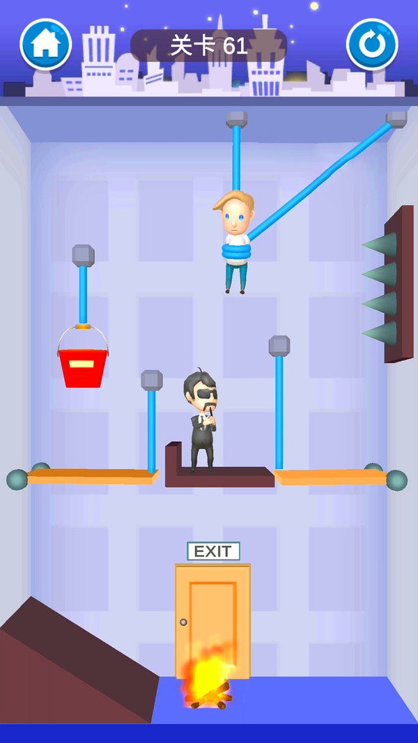 这是一款救援题材的休闲策略闯关手游,玩法类似割绳子。熊孩子被绑在了一个满满陷阱的房间里,用手指轻扫绳索并进行切割。帮助他逃脱,快来挑战一下自己吧!