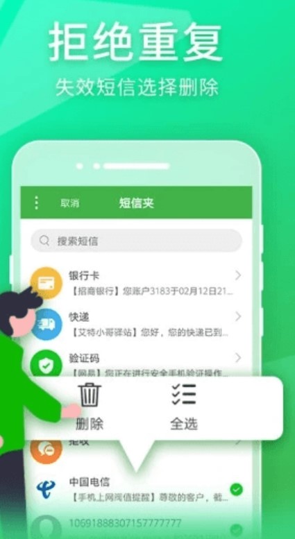 对于每一个短信文件夹都可以进行批量删除,广告短信、验证码一键删除,还无须担心有用短信被误删。