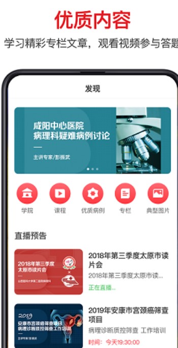 【互动课程】开设系列教学课程,跟随大咖的思路阅片,和大咖实时互动,还能参与答题,在线课堂测评立即反馈学 习效果。