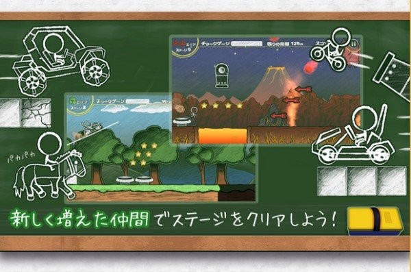 玩法非常有趣的粉笔画手绘画风的冒险闯关手游,彩绘画面充满童趣,主人公就是用白色粉笔画出的火柴人,还可以为他装备上各种交通工具,当然最终要的玩法就是为火柴人画出道路,让它越过障碍,一路前行!