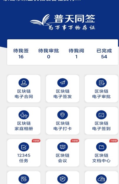 “普天同签”提供合同签约,文件签发,文件审批,区块链举证,区块链无纸化,区块链图片和视频,区块链审计等服务。