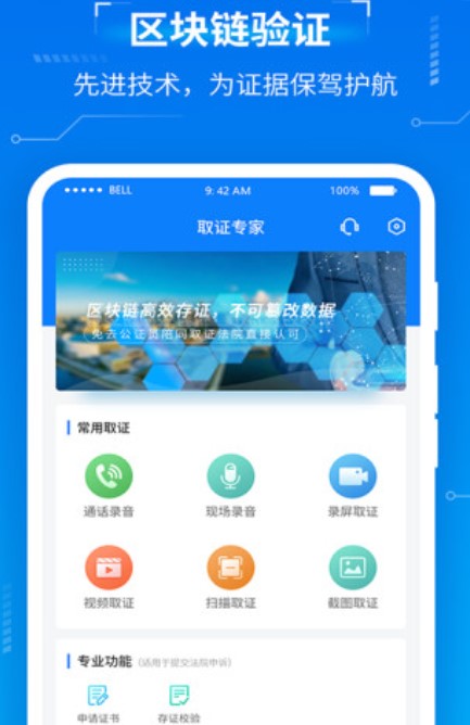 取证专家通过应用程序取证,可以进行现场录音、手机拍摄、手机录像界面、通话录音,收集并保存证据。 云保存-可以将证据上传到云进行保存。 适用性强——无论是个人、律师还是其他机构,取证专家都会帮你取证!