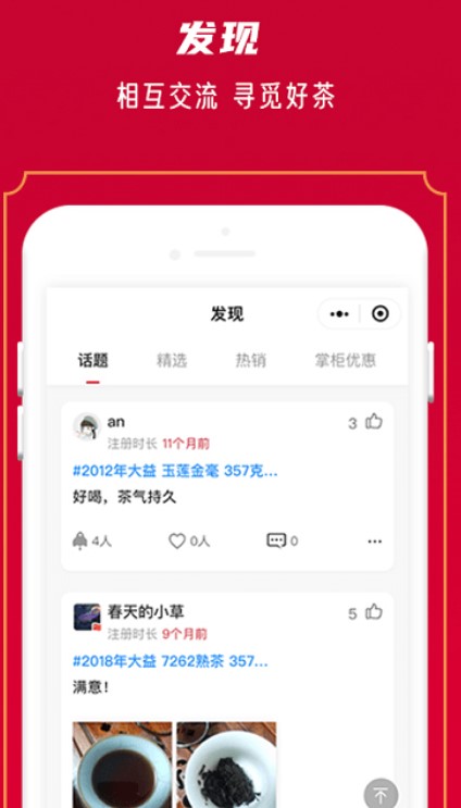 5、适合懂茶和对茶特别感兴趣的朋友互动交流,发现自己的好茶