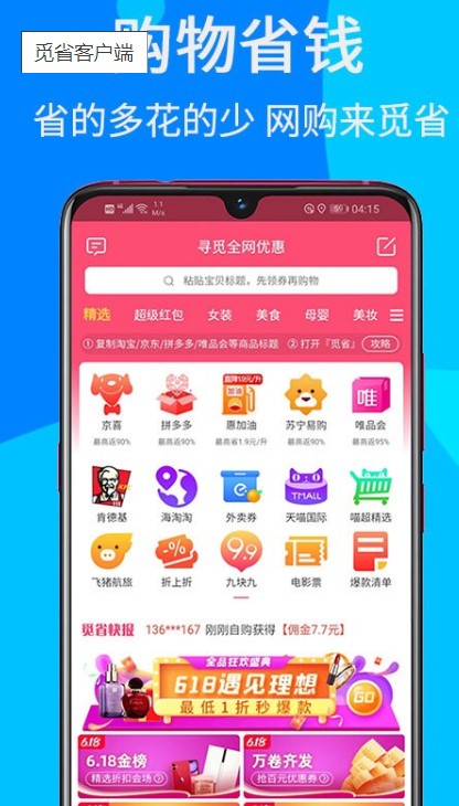 觅省客户端是手机网上购物应用程序,商品种类多,价格便宜实惠,而且质量有保证。 用户可以放心购买,每天推送数万种优惠券的商品,享受每天双十一的省钱乐趣吧。 买了放心,省了放心!