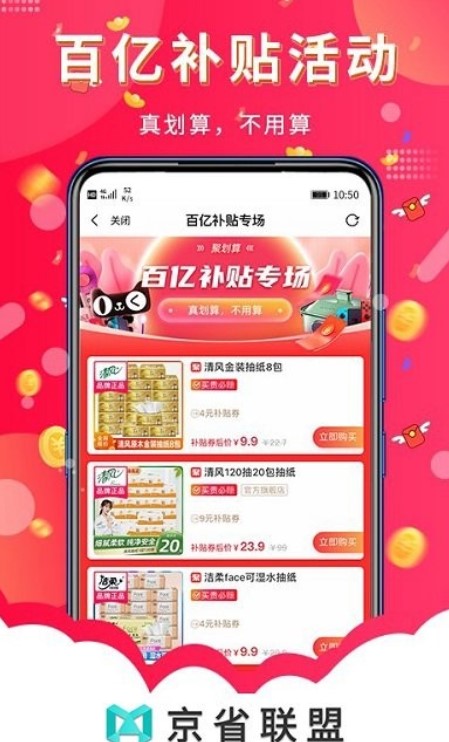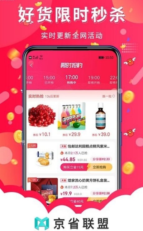 海量商品,优质好物,京省联盟app中建立了非常独特的商品渠道来进行各种优质好物的导入,让用户可以更加轻松的购买海量商品,购物更加轻松。