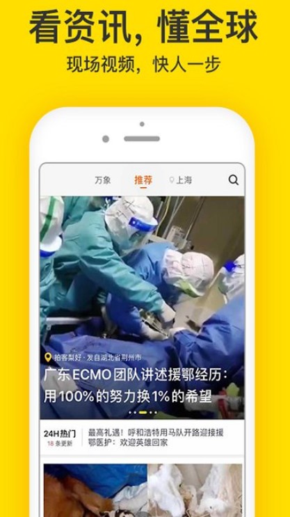 火爆的短视频APP,得到多家APP应用商店的优先推荐,多次更新微博微信! 原创内容、海量高质量短视频入驻,10000人全球拍照,共创新闻资讯3.0时代!