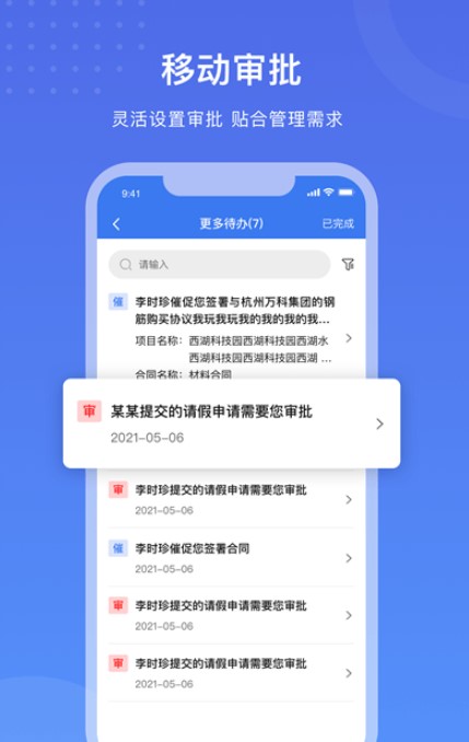 5、审批任务提醒,可以快速掌握自己需要处理和办公的任务;