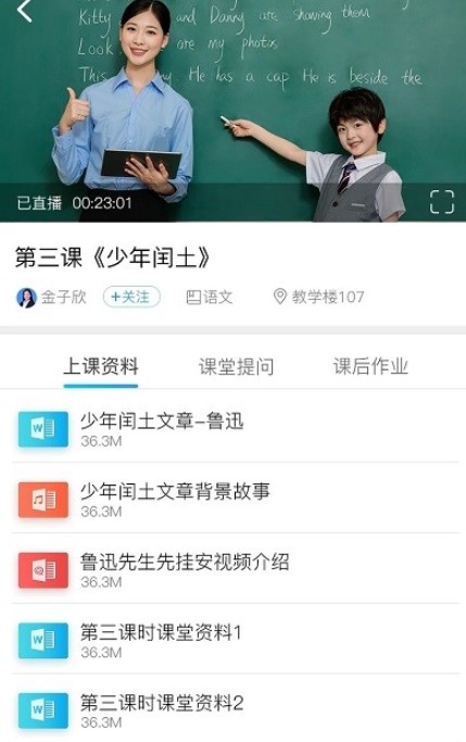 学生端无线接入课堂,与授课端展示的教学资料同步,组成集在线授课直播、点播、下载、学生提问、笔记等多功能于一体的教辅,学生听课和课后观看点播时使用的应用程序。