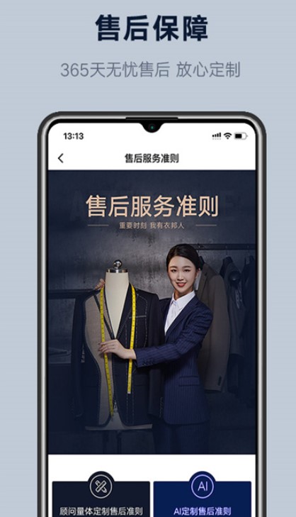 2、私人专属着装顾问:APP内预约定制,即可获得终身免费着装顾问,您可以随时向她咨询着装建议,她,是您的专属着装顾问。