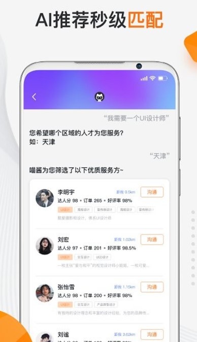 1.以AI智能算法推荐技术为核心,进行服务信息精准匹配,是一个专业的智能接活平台,