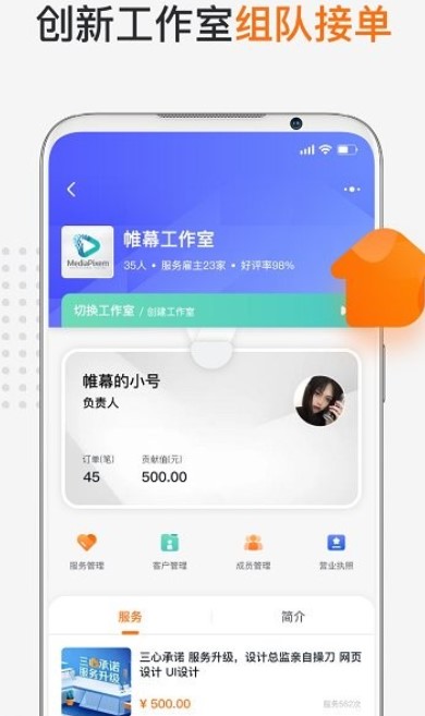 3.当个人无法独立完成复杂项目时,可升级为创新的工作室模式,大大降低创业门槛。