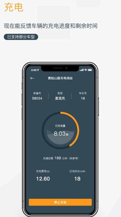 到达目的地充电桩后,可通过现场操作对车辆进行充电,并可以随时结束充电。