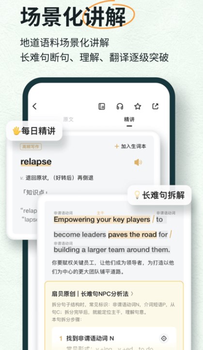 文章的重点单词、各类考试(四六级、考研、托福GRE雅思等)的难点单词,都会由系统高亮展示,帮助你查缺补漏.