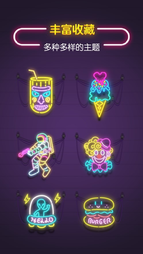 点亮霓虹灯是一款丰富多彩的休闲益智游戏。 游戏画面向治愈方向呈现的美丽画面,能够驱逐游戏所有的压力。 玩家们可以制作各种有趣的图形,让霓虹灯的线条通过。喜欢的朋友不妨下载玩玩吧。