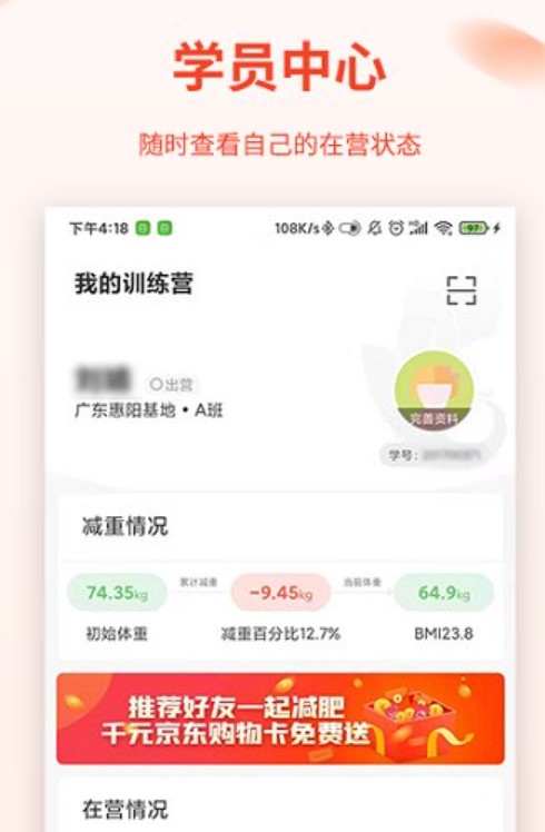巅峰减重APP让所有想减肥的朋友全面了解本公司,学生可以调查和管理自己的体重,学生家长随时了解学生的露营状态。 经过十多年的发展,现已成为一家专业从事体育减肥服务的企业。 目前在上海、北京、深圳、海南、南京、郑州、成都、杭州等城市设有减肥训练营和减肥夏令营,每年可服务会员10000多人。