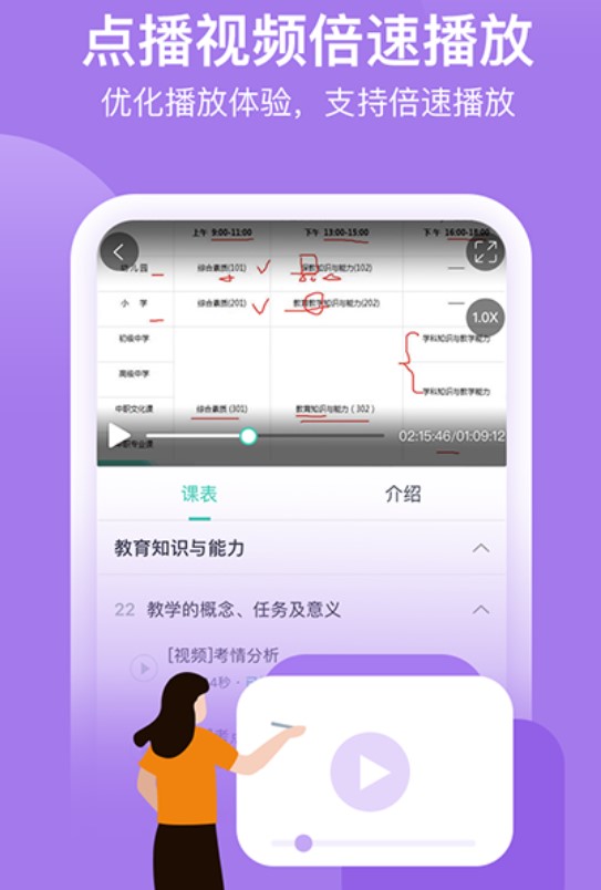 听课所需的神器。 包括中小学教师资格证在内,山东、福建、江西、安徽等15个省市的475套20000年真实问题。 此外,还提供模块练习、专用错题本大数据易犯问题推荐、每周免费直播、模拟推送等智能化功能,利用碎片化时间学习教师资格证和教师招聘,操作简单,随时随地学习。