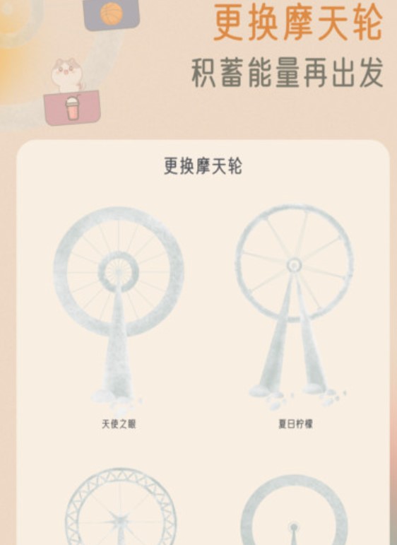 ·像永不停息的时钟,摩天轮承载着你坚持的习惯,每转一圈就离达成目标更近一步,每次打卡点亮座驾的那一刻,也将是你收获成长喜悦的时刻