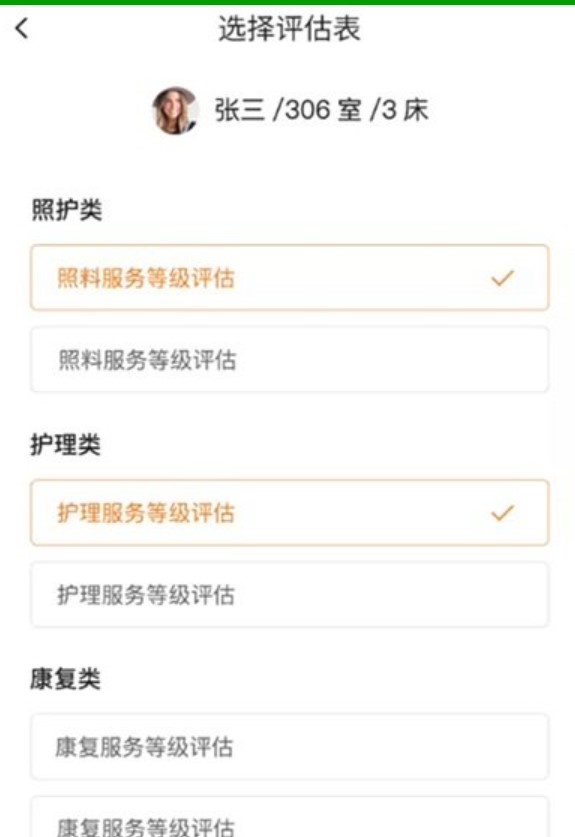 1、长者评估-长者药品-长者物品-长者生活-长者状态;