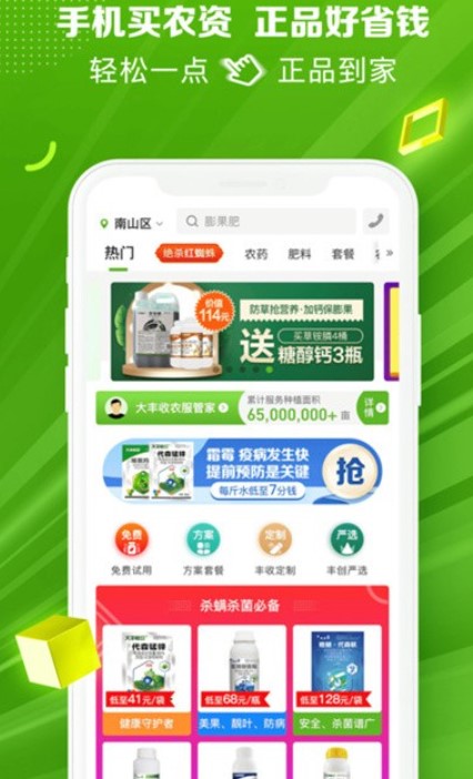 大丰收168应用程序是大丰收农资商城推出的农资电商平台客户端。 大丰收农资商城与国内外100多家知名品牌厂商合作,实现了数百种农资产品的网上采购。 通过资源整合,大丰收有效缩短了农业资金流通环节,降低了农业资金购买成本,提高了行业效率,为国内种植者提供了“正品、经济、方便”的农业资金购买体验。
