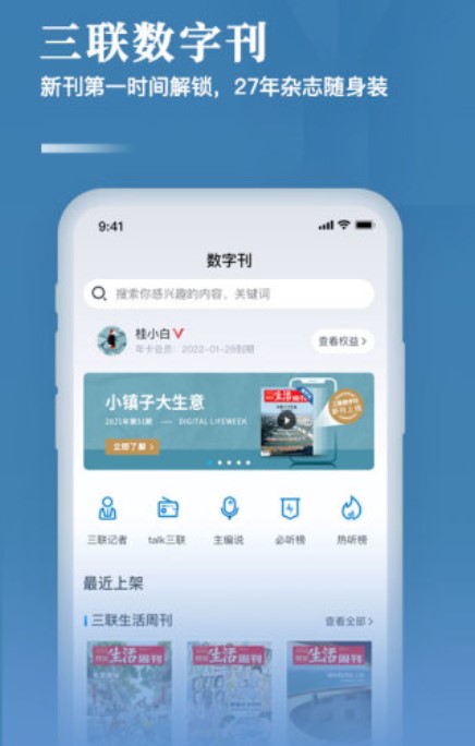1 .国内知名杂志《三联生活周刊》手机APP应用的全新升级版本。 定位于新一代内容发布和付费知识浏览的社交平台。
