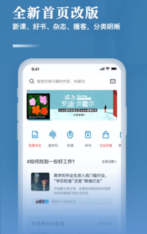 3.“中读”是一个基于移动端的社交阅读和知识服务平台,也是《三联生活周刊》创刊以来所主张的生活态度和价值观的延续和延伸。