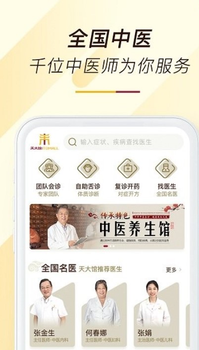 天大馆APP是专业的中医医疗平台,有各地知名中医、数字老中医。 用户可以在线随时随地找到权威中医询问病情。 方便用户多渠道寻找名医,更快找到专业名医,通过数据和医生判断快速帮助用户确诊。