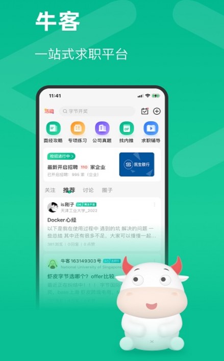 牛客APP是一个集专业IT技能学习、备考、就业题库于一体的手机APP应用,百万多人在此免费学习IT技术,牛客APP适用于学生、应届毕业生、IT从业人员、程序员、工程师等所有需要学习的人。