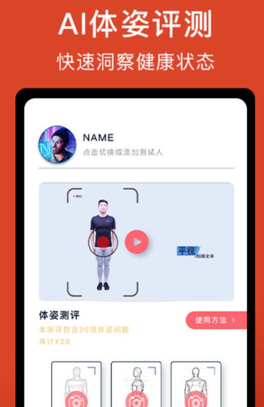 2、体语APP首发AI体姿测试功能,让您速了解自己的体姿。