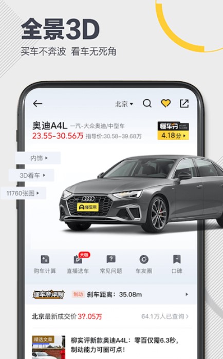 【有趣】丰富的“直播、小视频”内容体验;创新的“3D看车、拍照识车”等丰富有趣的内容和功能,让你告别枯燥,开心选车。